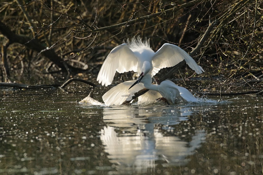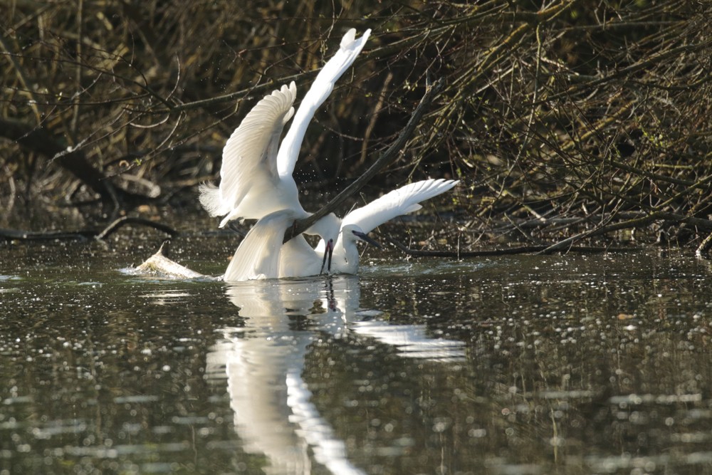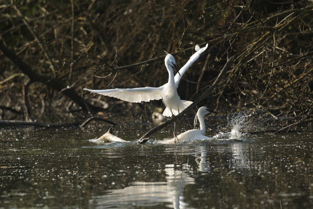 Les 2 espèces d'aigrettes observables en Alsace et la spatule blanche.