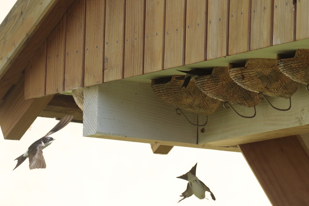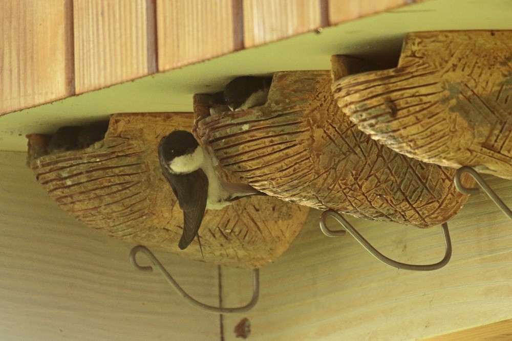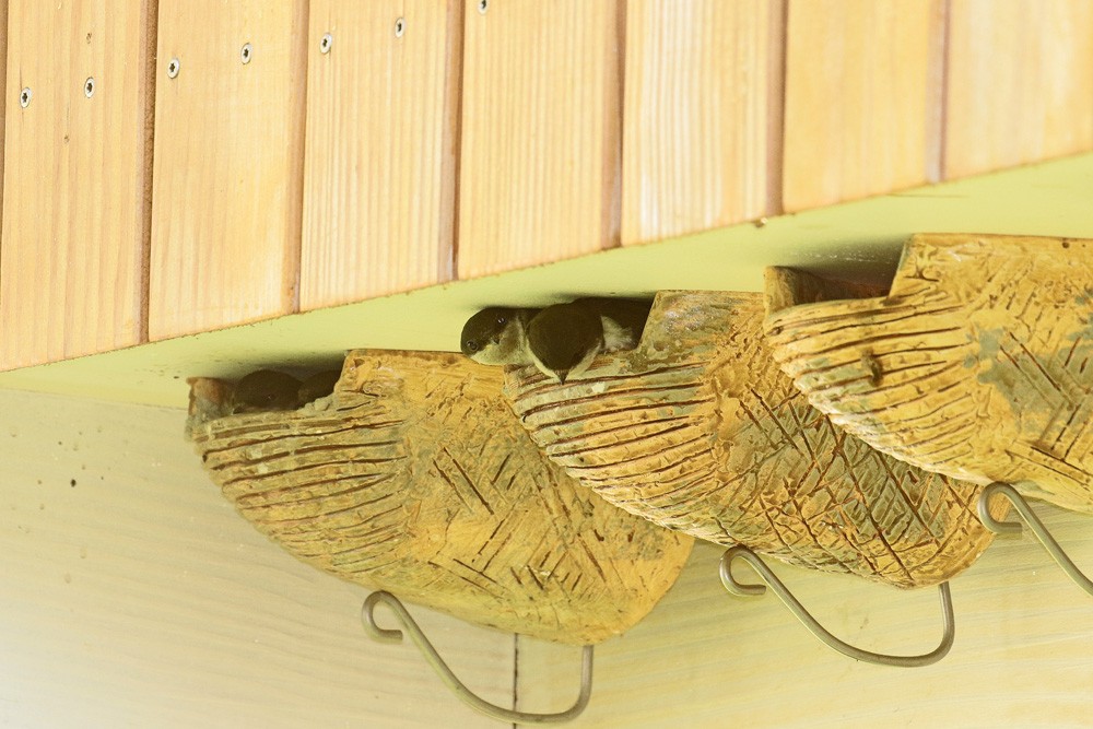 Pour compenser le manque de boue et éviter les conflits avec les habitants certaines communes mettent à disposition des "hôtels" à hirondelles. Ceux ci sont très bien accèptés par les oiseaux.